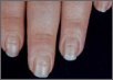 More clues:The nails (fingers as well as toes) will also thicken. They may be yellow-brown or have salmon-colored patches. The knuckle nearest the nail is also likely to be dry, red and inflamed.
